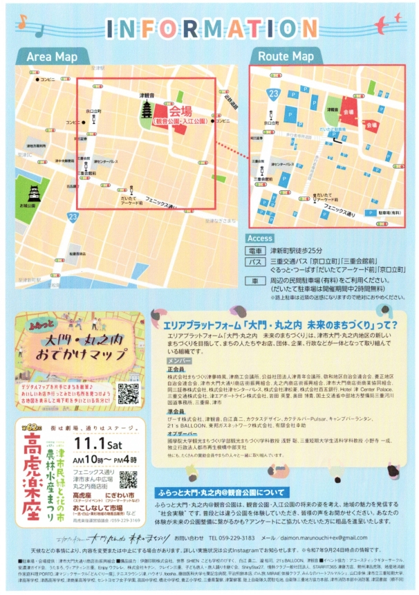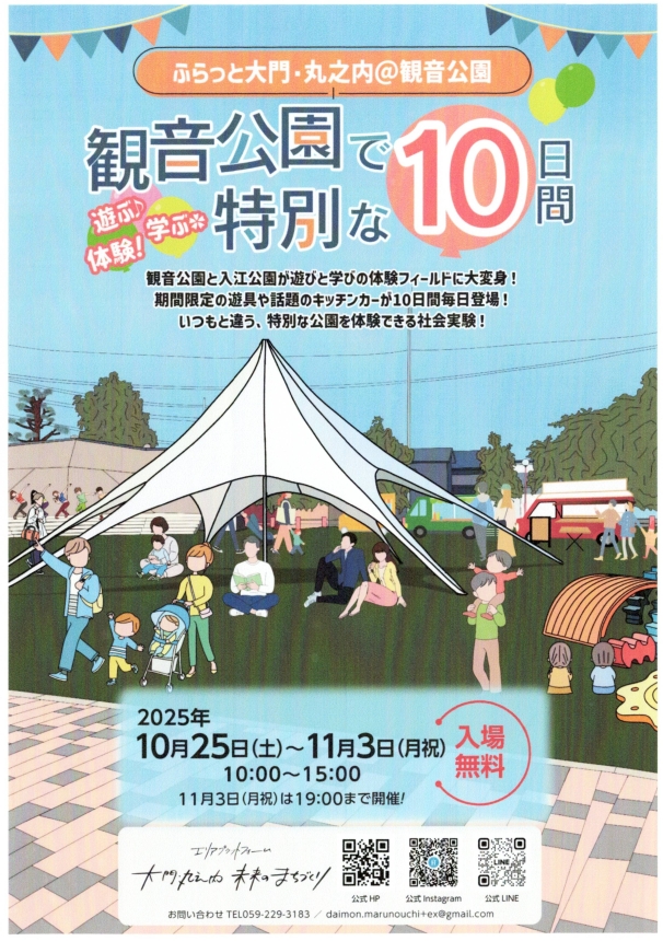 津市の中心市街地の大門・丸之内地区にある「観音公園・入江公園」を魅力的な空間に設える社会実験「ふらっと大門・丸之内@観音公園」を実施します!