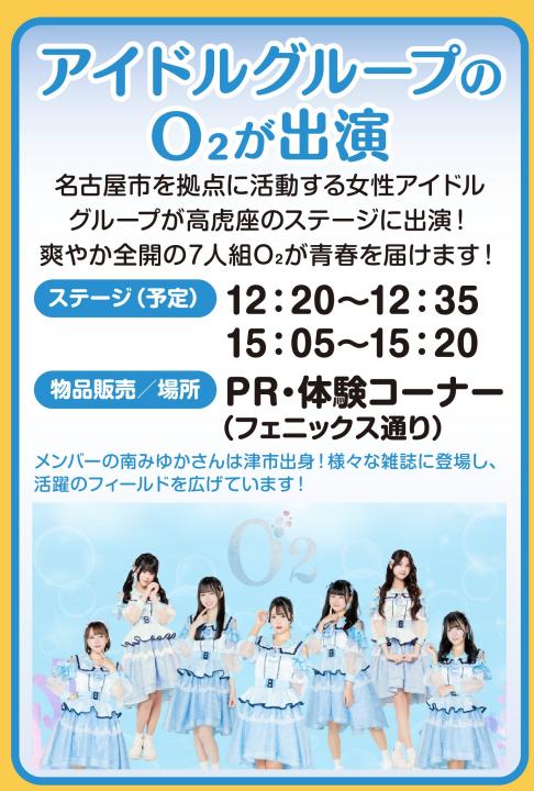 子ども唐人や太鼓演奏、津西高校生によるダンス・吹奏楽・軽音などのステージのほか、おこしなして市場による美杉・白山・一志の物産品販売や、フリーマーケットやアクセサリー・雑貨・花のマルシェ、津西高校生によるシロモチくんをモチーフにしたわたがし販売など楽しいイベントが盛りだくさん!