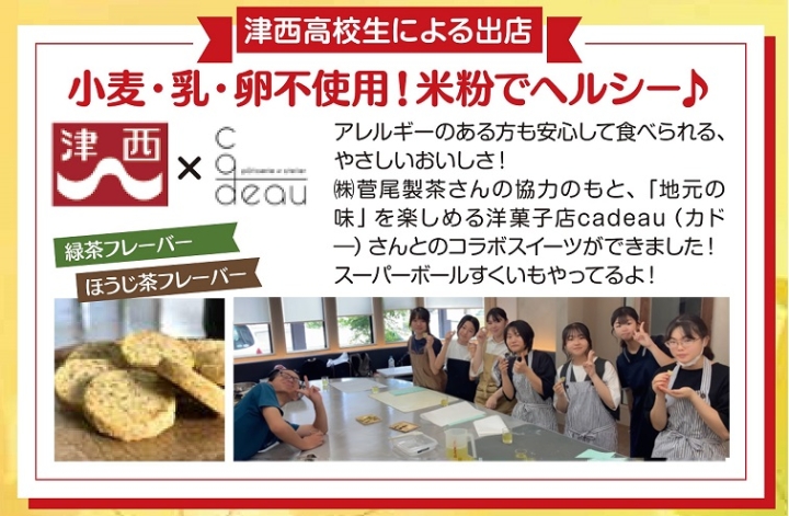 今回は津西高校のステージや「シロモチくんわたがし」販売、ニューマルシェLetterなど若い力が躍動しました。